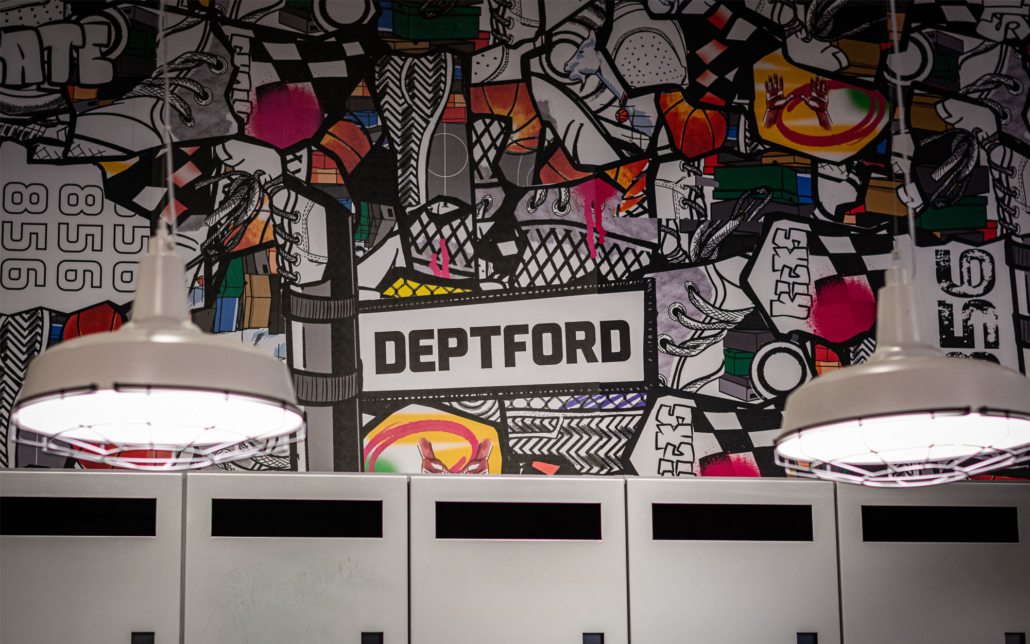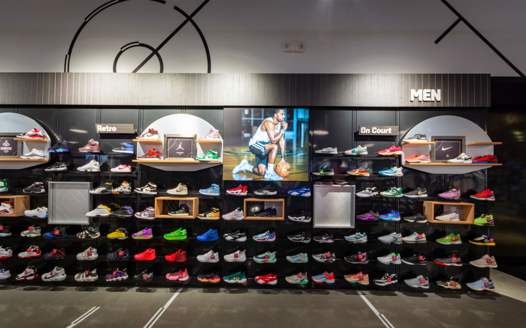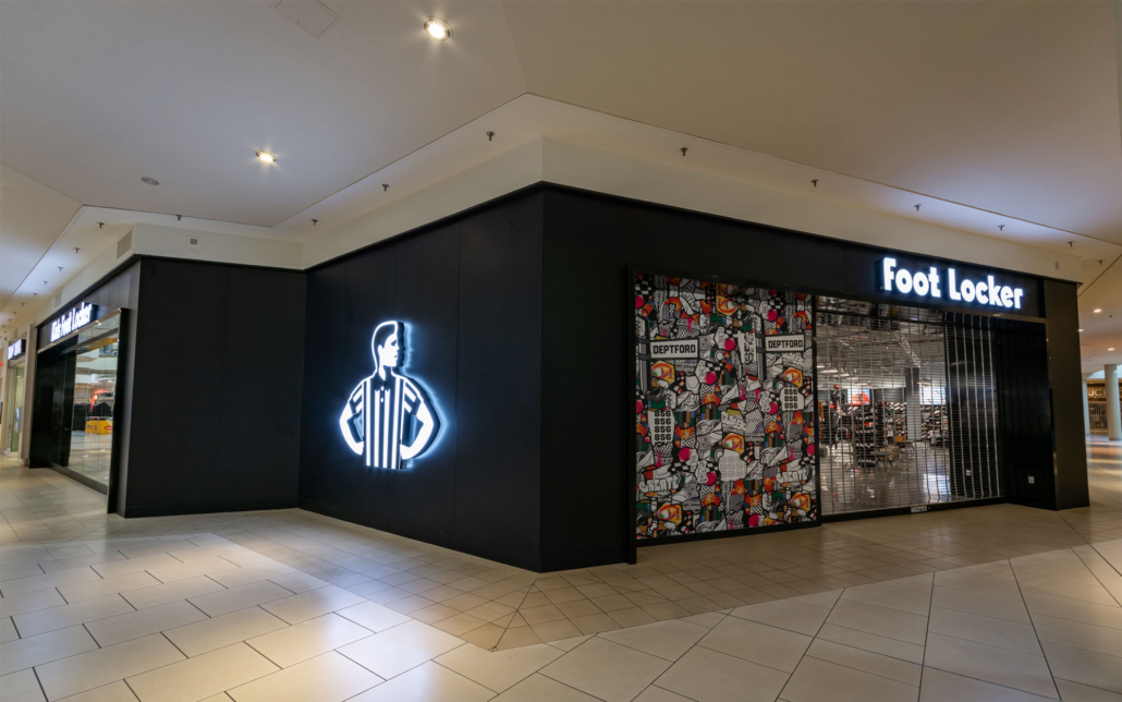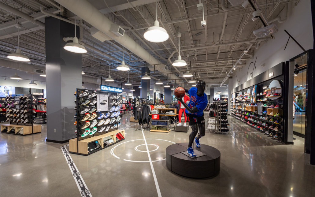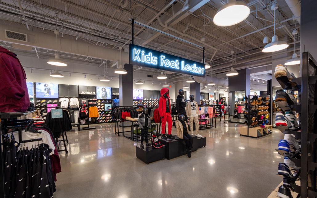 Expanding the existing Foot Locker into two adjacent tenant spaces required demolishing walls and leveling the floor down to the slab. Despite the scope of demolition posing potential delays, Connor Construction’s team worked diligently to stay on schedule. Once we had a blank canvas, we installed a cohesive lighting grid, framed and finished carpentry, and installed signage for both the interior and storefront. Foot Locker’s new store prototypes emphasize clean polished floors and ample lighting, ensuring customers can view shoes and apparel as they would on or off the court.