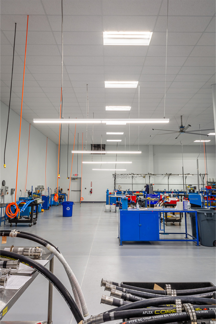 Industrial warehouses need ample room to manufacture equipment and maintain employee safety. Connor Construction is proud to have led the renovation project for Aflex Hose USA, the leading manufacturer of PTFE flexible hose. Within 209 days, our contractors have successfully installed sufficient lighting and provided adequate space to allow manufacturers to work efficiently.